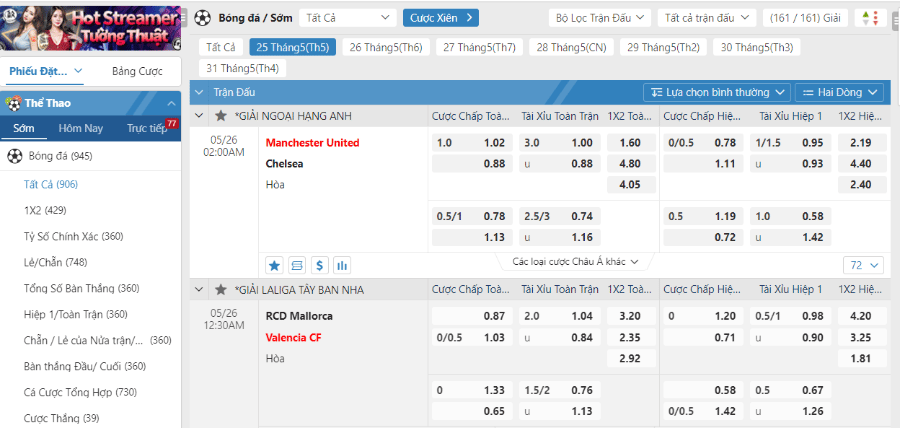 • Cá cược thể thao: Đa dạng loại hình cá cược thể thao như cá cược bóng chuyền, bóng rổ, golf, bida… đặc biệt là Cá cược Bóng đá với hàng trăm giải đấu mỗi ngày. Người chơi sẽ có thể đặt cược vào nhiều loại kèo khác nhau như kèo chấp châu Á, kèo tài xỉu, kèo châu Âu, kèo Malay, Kèo Indo, kèo Handicap, kèo thẻ phạt, kèo tỷ số, kèo phạt góc… với tỷ lệ thanh toán cực cao.